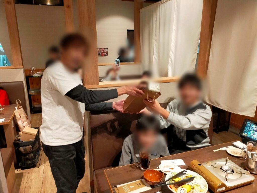 食事会が盛り上がってきたところで、毎年恒例のプレゼント交換をしました。